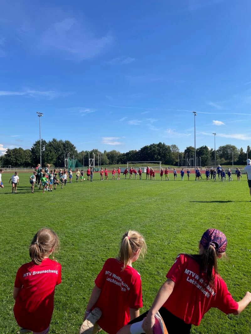 Nachdem im letzten Jahr bereits zwei kreisübergreifende Trainingseinheiten mit dem Kreis Braunschweig durchgeführt wurde, sollte diese erfolgreiche Maßnahme auch in diesem Jahr fortgeführt werden. So trafen sich knapp 75 Kinder aus den Kreisen Wolfenbüttel und Braunschweig bei schönsten Sonnenschein am 22.03. auf der Bezirkssportanlage in Rüningen, um gemeinsam zu trainieren. Diesmal stand das Training unter dem Motto "Staffeltrainingstag". So wurden am Vormittag in Gruppen die Staffelwechsel spielerisch erlernt, verbessert und vor der Mittagspause das Gelernte in einer 4 x 50m, 4 x 75m und 4 x 100m Staffel auf der Tartanbahn direkt umgesetzt. Nach der Mittagspause rundeten verschiedene Staffelspiele die gemeinsame Trainingsmaßnahme ab. Highlight des Tages war eine abschließende Schwedenstaffel. Hier bildeten jeweils 4 Kinder ein Team uns sollten die Strecken von 400m, 300m, 200m und 100m untereinander aufteilen. Die Möglichkeit gegen andere Teams anzutreten und altersübergreifend zu starten gefiel allen sehr. Ein großes Dankeschön gilt allen ehrenamtlichen Mitwirkenden, die dieses vereins- und kreisübergreifendes Training ermöglicht haben. Ende des Jahres ist eine Wiederholung der Maßnahme geplant.